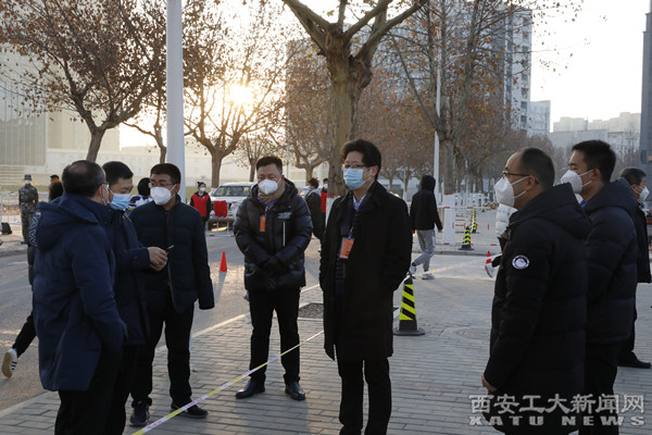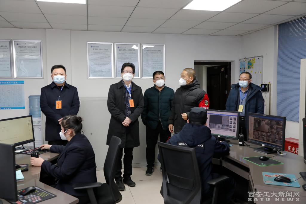 (本网讯)根据西安市疫情防控指挥部统一部署,及12月27日全省教育系统疫情防控工作视频会议精神,为切实严防疫情在校内传播,学校自12月27日起实施封闭管理。12月28日,校党委书记刘卫国、党委副书记梁云鹤、副校长祁玉龙深入一线检查指导学校疫情防控封闭管理工作落实情况。校领导来到学校报警中心,通过报警监控室的大屏幕了解学校各监控点位的情况。刘卫国嘱咐值班人员要加强重点点位的监控巡察,同时要注重调整好身体状...