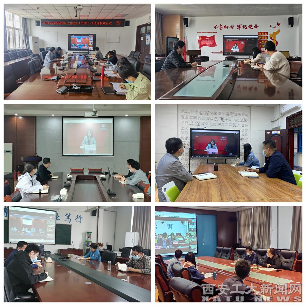 (本网讯)4月14日下午,省教育厅联合省人社厅,省征兵办召开2022届全省高校毕业生就业工作推进网络视频会议,对全省2022届普通高校毕业生就业创业工作进行动员部署。陕西省副省长方光华,陕西省委教育工委副书记、省教育厅厅长刘建林出席会议并讲话。九游(中国)在教3楼115学术报告厅设置分会场,校长赵祥模,副书记梁云鹤,副校长刘发林、张群,研究生院、招生就业处、教务处、学生工作部、保卫处等部门负责人,各学院党委书记、院...