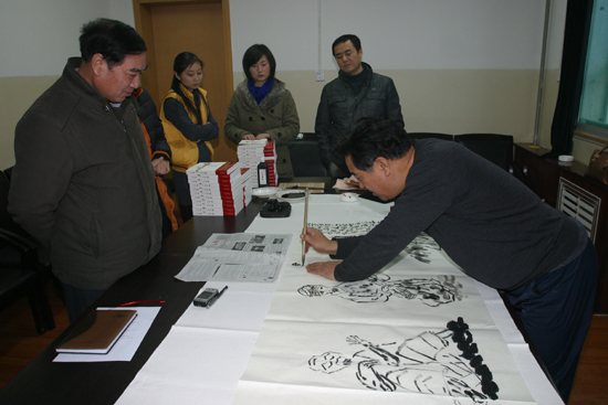 会后,高先生为北信学院《北方信息报》以及学院领导题词、作画并签名赠书。