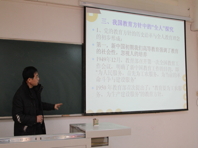 (本网讯)为加强教师之间的交流,推动九游网页版登录入口思政部教学、科研水平的进一步提高,展示教师在学术领域的精彩学术观点,思政部特举办 “精彩学术观”学术大讲堂。12月16日,大讲堂第三讲在金花校区6-206教室开讲,由田亮教授主讲题为“全人—高等教育的终极目标”学术报告,思政部全体教师及研究生参加了此次活动。