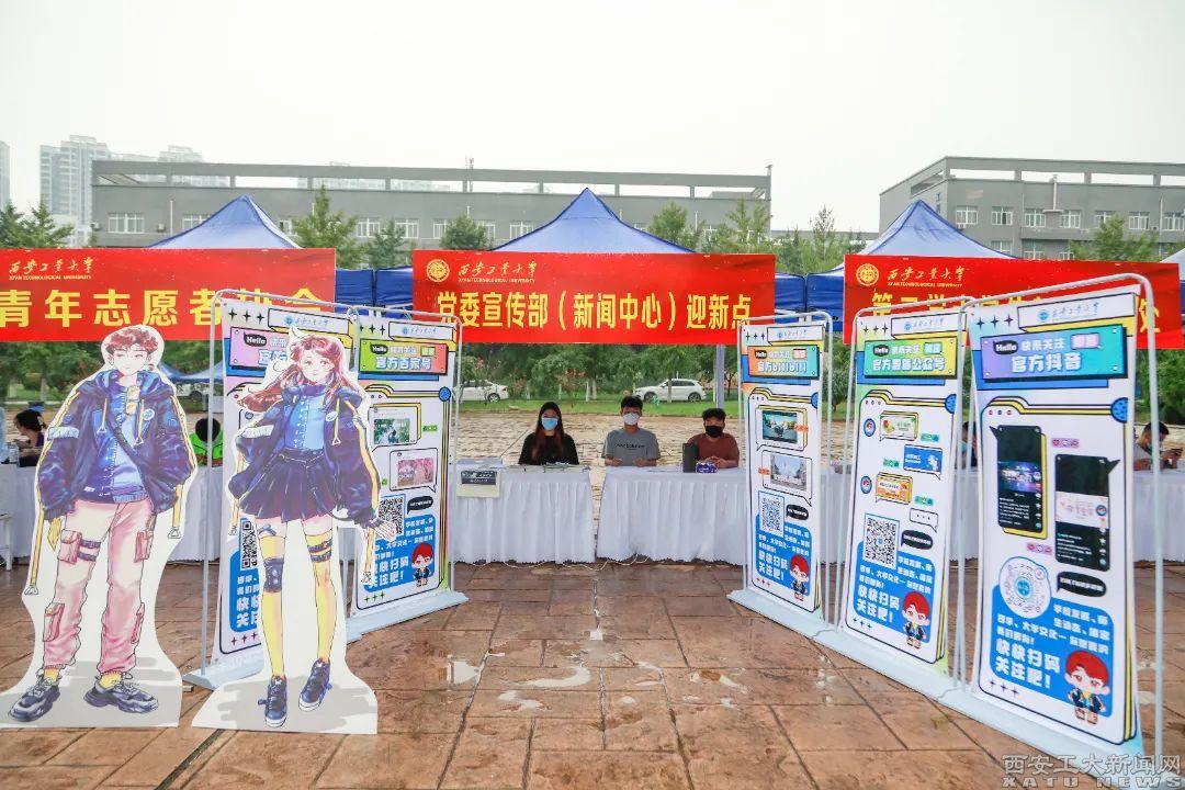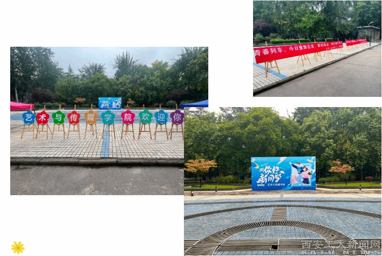 宽阔的经纬广场上,各学院部门的迎新点早已设置齐整。