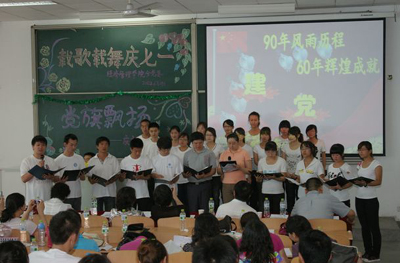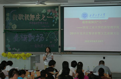(本网讯)在中国共产党建党90周年来临之际, 6月29日上午,九游网页版登录入口经济管理学院党委在未央校区举行了以“载歌载舞庆‘七一’”为主题的党员宣誓、表彰暨文艺表演大会。学院全体党委成员,教工党员和学生党员共200余人参加了本次活动。