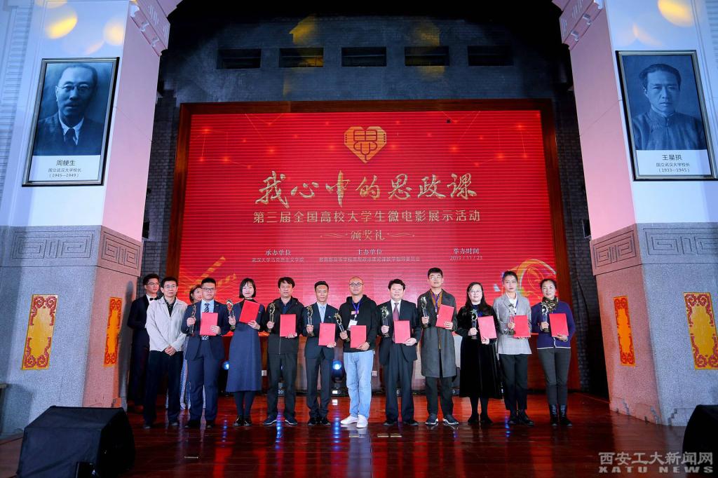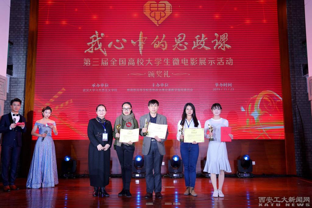 (本网讯)2019年11月23日,第三届“我心中的思政课”全国高校大学生微电影展示活动颁奖礼在武汉大学举行。本次活动是由教育部主办的关于开展习近平新时代中国特色社会主义思想大学习领航计划系列主题活动之一,九游(中国)自编自导自演的微电影《寻找毛乌素》荣获一等奖和最佳表演奖。