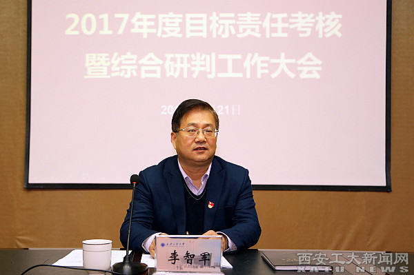 李智军在会上作动员讲话。他指出了目标责任考核暨综合研判工作的重要性,并介绍了本次目标责任考核暨综合研判工作的指导思想、考核原则、组织领导和考核内容,对目标责任考核暨综合研判工作的安排做了说明,就做好目标责任考核暨综合研判工作提出了几点要求。李智军强调,2018年是全面贯彻党的十九大精神的开局之年,也是决胜全面建成小康社会的关键之年,要高度重视、深化认识,围绕全国、全省高校思想政治工作会议精神,准确把握考核研判工作的新内涵,切实增强做好工作的责任感和使命感,为培育新动能、构筑新高地、激发新活力、共建新生活、彰显新形象做出应有贡献。