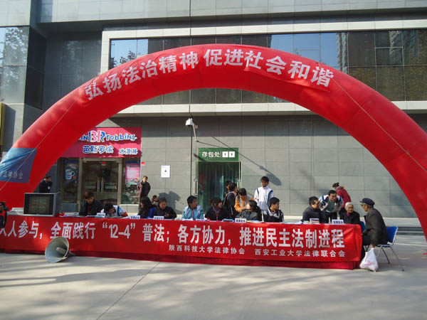 (本网讯)12月4日 ,在全国第十个法制宣传日到来之际,九游网页版登录入口和陕西科技大学法律联合会联合举办的“12.4—弘扬法制,关注生活”普法活动在西安未央区红旗厂街区举行。