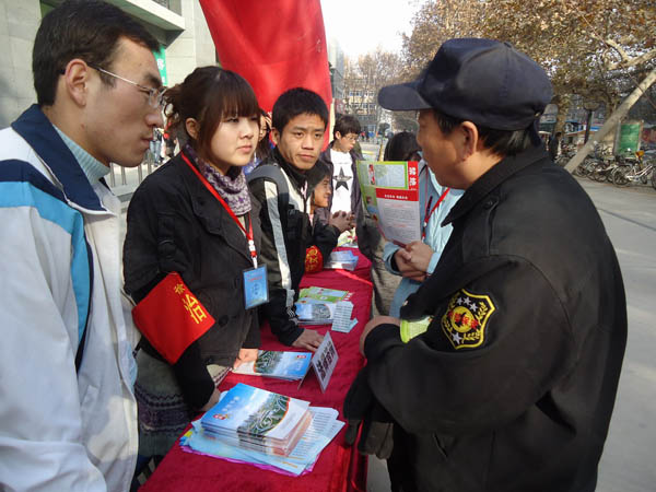 在 12.4普法活动中,两校法律联合会主要通过放映法制宣传片、发放法制资料和法制手册及进行现场一对一法律咨询等多种形式进行普法宣传,宣传内容涉及劳动、消费、侵权等多个领域。咨询现场法律咨询员们热情耐心的解答街区群众提出的法律问题,将自己在课堂所学的专业知识为街区群众带来实实在在的法律行动指南,使每一位街区群众能够带着问题来,带着满意归。