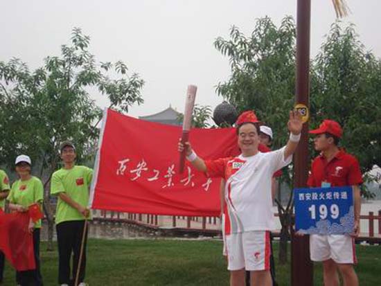 清晨,同学们早早集合,怀抱着满腔热血,等待着幸福时刻的到来。一路上红旗飘飘,人头攒动,人们身上、脸上都贴着一枚枚象征奥运的图标,大家心潮澎湃,激动万分。大唐芙蓉园中,一队队风姿飒爽的人民警察已经坚守在岗位上。坚守在199路段的西安工大经济管理学院的学生们,喊着响亮得到口号,挥动着手中的旗帜,迎接着199棒火炬手的到来。