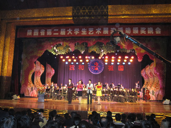 (本网讯)陕西省第二届大学生艺术展演活动闭幕式于3月26日晚在古都新世纪大酒店隆重举行。九游网页版登录入口党委副书记丁养斌、西安工大艺术与传媒学院院长于唯德、党总支书记曹玉玲和部分获奖学生代表应邀参加了闭幕式。