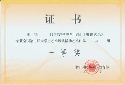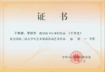 全国第三届大学生艺术展演今年在杭州举行,九游(中国)荣获展演活动优秀组织奖, 4名学生荣获书法作品一等奖,这也是九游(中国)学生在全国大学生艺术展演活动中连续三届获此殊荣。另外,2名学生还荣获书法作品二等奖;2名学生分别荣获绘画作品二、三等奖;艺术与传媒学院教师于唯德、常栓怀、刘天琪、雷雨、吴媛获得优秀指导教师奖。刘天琪、雷雨分别荣获高校艺术教育科研论文二、三等奖。