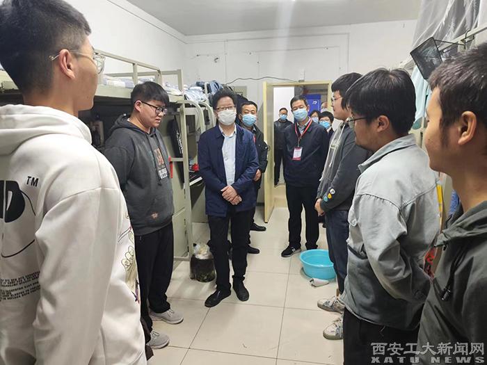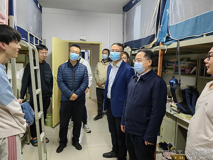 (本网讯)为进一步做好封闭期间学校疫情防控工作,加强与学生的沟通交流,了解和掌握学生生活学习情况。近期,校党委书记刘卫国、校长赵祥模分别带队分批分组深入学生宿舍,走访慰问学生。党委副书记梁云鹤,党委副书记、纪委书记、监察专员王发合,党委副书记马福,副校长刘卜等校领导随同走访。