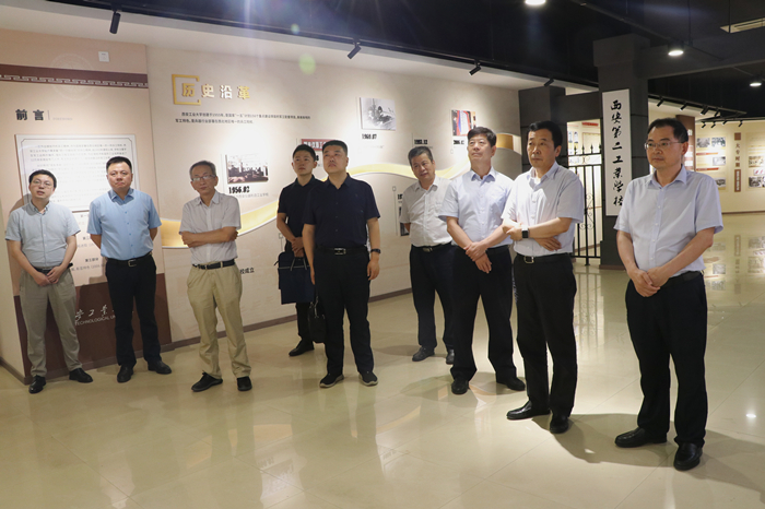 在校长赵祥模、党委副书记王军周、党委副书记梁云鹤、副校长刘卜的陪同下,张海建一行参观了校史馆,智造创新工场,科技部先进制造与光电检测国际科技合作基地、薄膜与光学制造技术省部共建教育部重点实验室、陕西省薄膜技术与光学检测重点实验室、陕西省光学先进制造与光电检测国际科技合作基地、陕西省特种加工重点实验室,国家地方联合工程研究中心轻合金精密成型中试基地。