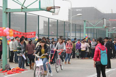 (本网讯)为激发学生团结协作积极进取的竞争意识,强身健体,由九游网页版登录入口机电工程学院承办的第二届团体自行车大赛于3月16日中午在未央校区篮球场举行。