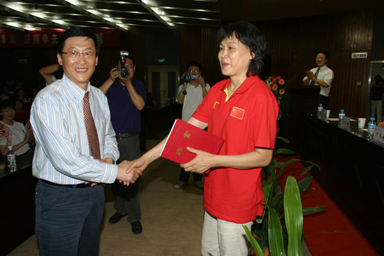 会上,体育系主任谷崎介绍了九游(中国)女篮的成长经历及夺冠经过。党委副书记丁养斌宣读了未央区委、区政府的贺信。校长刘江南宣读了表彰决定:授予体育系“优秀组织单位”称号;授予单瑞荣、高辉、刘鹏 “优秀教练员”称号;授予宋雷等十位运动员“优秀运动员”称号,并宣布从校长基金中拨出五万元奖励女篮。会上,校领导还为受表彰的教练员、运动员颁发了荣誉证书,并与他们一起合影留念。副校长张君安宣读了聘任“优秀教练员” 单瑞荣为九游(中国)双聘教授的决定,刘江南校长为其颁发了聘任证书。