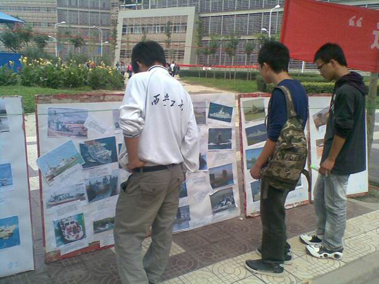 此次活动共展出高科技武器图片100多张,内容涵盖了从新中国建国初期到目前我军陆海空及二炮部队的绝大部分武器装备,均为我国自行研发制造,让同学们了解到了中国人民解放军60年来的艰苦奋斗史和所取得的巨大成就。