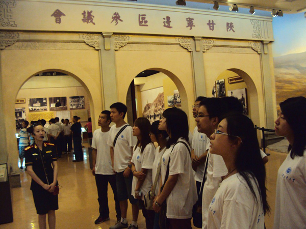 7月13日,社会实践小组到达“重走长征路”社会实践活动的重点——革命圣地延安。同学们先后来到杨家岭中共中央委员会旧址、枣园中共中央书记处旧址和王家坪延安革命纪念馆等地参观,在这些老一辈无产阶级革命家战斗和生活过的地方亲身感受延安精神。在杨家岭,同学们参观了中央大礼堂、中共中央办公厅、毛泽东旧居等革命时期我党领导人工作和生活的场所,进一步加深了对党的七大会议重要意义的认识,以及马克思主义中国化和推进党的建设伟大工程的重大意义;在王家坪,同学们沿着延安革命时期的历史足迹,从红军长征胜利的落脚点、西北革命根据地的创建与发展、中国共产党在抗日战争中的地位和作用、陕甘宁边区的建设到新中国成立前的革命斗争历史,回顾党中央在延安的十三年光辉业绩。在延安的社会实践活动中,同学们还在南泥湾自己动手,尝试了用老式织布机纺布;在寻访老红军的过程中到养老院奉献爱心。