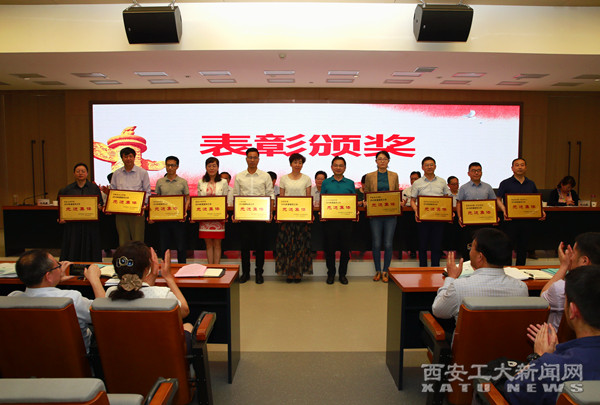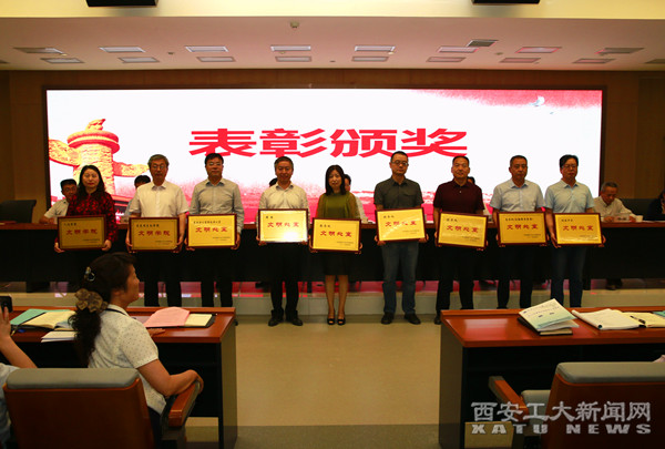 党委副书记吴介军宣读上级表彰文件。纪委书记郑建山宣读学校表彰文件。校领导为获奖单位颁发了“文明校园”创建活动及宣传思想文化工作等获奖项目奖牌。
