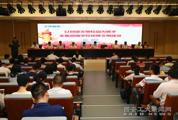 党委副书记、校长雷亚萍作题为《以创建文明校园为抓手,全面加强学校精神文明建设》的工作报告。雷亚萍从思想政治教育扎实推进、校园文化活力持续增强、宣传舆论工作成效显著三个方面,回顾总结了上一阶段学校精神文明建设各项工作,重点对下一阶段工作做了部署。她强调,要构建以大学生教育为核心的“大思政”同心圆,建设以文明校园建设为中心的文化传创格局,树立以文化品牌建设为重心的“大宣传”理念,奋力拓新精神文明建设工作新局面。