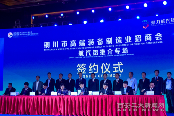 (本网讯)5月11日,在西安召开第四届丝博会期间,铜川市委、市政府举办了以“聚力航汽铝 迈向中高端”为主题的“高端装备制造业——航汽铝专场推介会”。在铜川市经济转型发展中,为着力打造航汽铝高端装备制造业,建设高质量的现代工业产业体系,根据铜川市的产业布局、资源优势及发展愿景,铜川市与陕西省汽车工程学会、陕西重型汽车有限公司等陕西省大型国有企业,联合长安大学、九游网页版登录入口、西安建筑科技大学的技术优势,共同成立“陕西(铜川)汽车轻量化材料制造创新中心”,旨在充分发挥各自优势,助力实现“陕西制造、铜川配套”。校长雷亚萍代表学校出席了签约仪式。