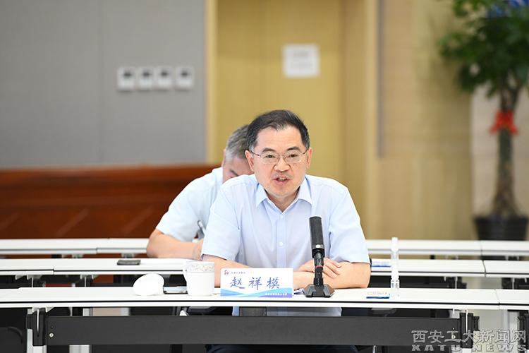 赵祥模代表学校向陕建机施集团对学校的关心与支持表示衷心的感谢。他介绍了学校的生源情况、专业设置、人才培养、学科建设以及近年来取得的成果。他表示,校企双方同根同源,有着共同的成长背景,希望双方以此次活动为契机,进一步拓宽合作广度和深度,聚焦人才培养、科学研究、基础服务、成果转化、实习就业等领域,大力推动产教融合、产学研合作,也期望集团领导早日来学校进行考察指导,进一步拓展合作交流的平台。