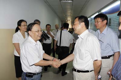 (本网讯)6月24日上午,博士点立项建设中期检查组专家、陕西省学位办领导一行在校党委书记赛云秀、校长廉振民、副校长刘卫国等的陪同下,来到材料与化工学院考察了材料科学与工程学科基地。