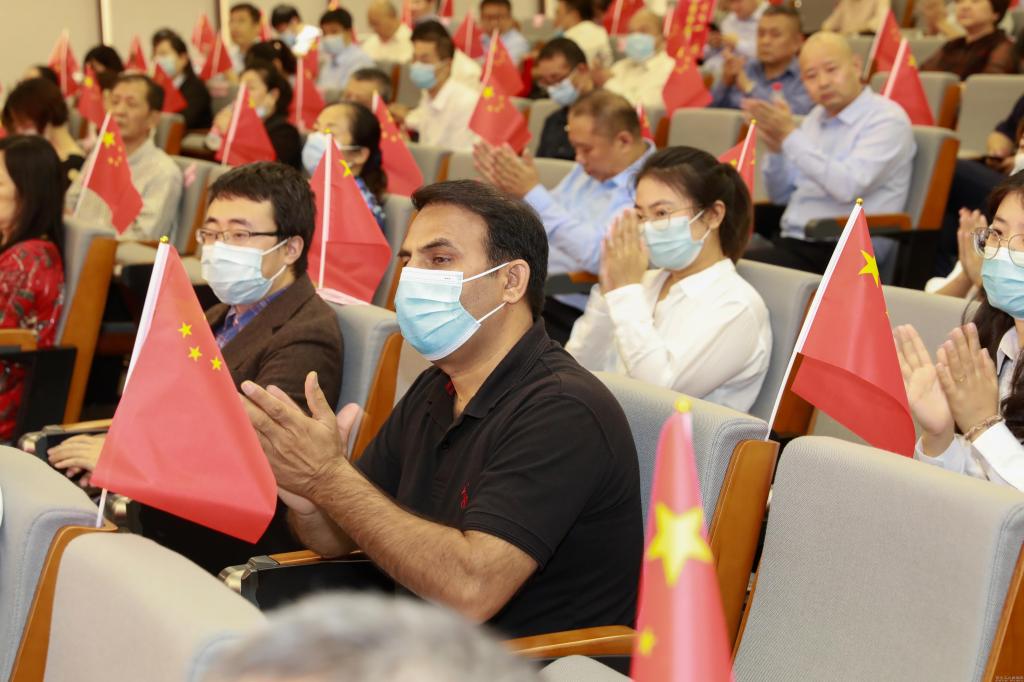 最后,全体参会人员集体高唱《歌唱祖国》,共同祝愿祖国的明天更加美好,表彰大会在满场的红旗挥舞中圆满落幕。