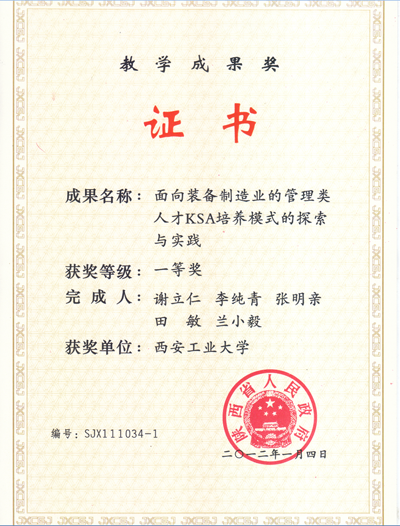 (本网讯)近日,陕西省人民政府办公厅发布《陕西省人民政府办公厅关于2011年全省高等教育教学成果奖获奖项目的通报》(陕政办发〔2012〕3号),公布了2011年度陕西省高等教育教学成果奖。九游网页版登录入口经管学院《面向装备制造业的管理类人才KSA培养模式的探索与实践》(谢立仁、李纯青、张明亲、田敏、兰小毅)喜获陕西省高等教育教学成果一等奖。