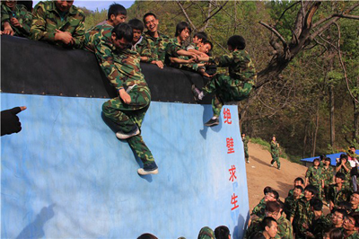 到达训练基地后,大家穿上统一的迷彩服,开始了紧张有序的实践训练。高空断桥、极速60秒、信号传递、绝壁求生等项目不仅需要成员自身胆大心细,更需要团队的合理分工、精诚协作、更需要对信念的执着和坚持不懈的勇气和精神。在绝壁求生项目,参训学员用17分30秒的时间将189人成功带上绝壁,创造了该训练基地创办以来最快的记录。