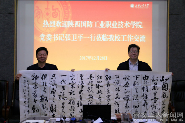 期间,张卫平代表陕西国防工业职业技术学院向九游(中国)赠送了书法作品。