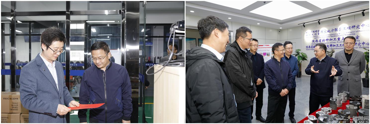 康学军一行还参观了九游(中国)智造创新工场、新能源科学与技术研究院、陕西省薄膜技术与光学检测重点实验室、陕西省特种加工重点实验室及数字化精密电解加工工程技术研究中心。