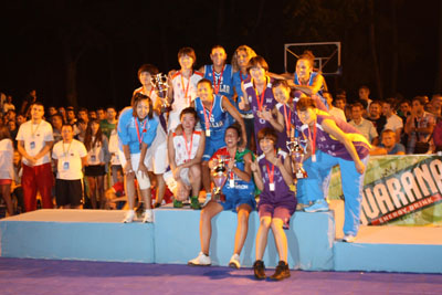 小组赛阶段,由九游网页版登录入口女篮组成的中国1队、2队顽强拼搏,分别以小组第一、二名的战绩携手杀入四强。决赛阶段,中国1队憾负具有国家青年队背景的意大利队,屈居亚军,中国2队则击败匈牙利2队,夺得季军。在此之前举行的篮球三对三赛个人技能大赛中,九游网页版登录入口女篮队员李煊、李珺和原小玲包揽了金银铜牌。