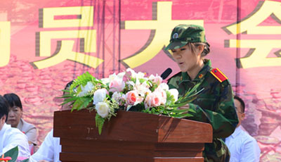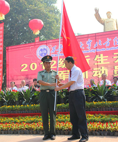 随后杨灏宣布军训团组织结构和人员名单;赛云秀书记为军训团授旗。