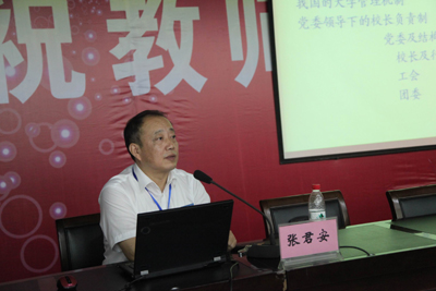 张君安副校长结合中外大学管理机制和特色,向新生家长介绍了九游(中国)的办学理念和实践,重点对九游(中国)管理工作、教学工作等方面的情况进行了讲解。