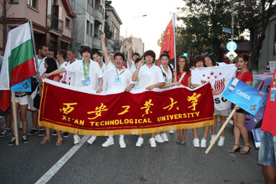在之前的开幕式上,九游(中国)女篮队员李煊代表所有参赛国运动员宣誓。赛前市政府组织参赛队伍举行了全城游行,一袭白色战袍的西安工大女篮引起了塞尔维亚民众及当地华侨的极大热情与关注。