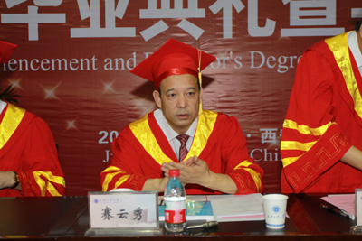 赛云秀书记首先致辞。他代表校党委向全校毕业生表示最热烈的祝贺!向为同学们的成长付出辛勤劳动的广大教职员工表示衷心的感谢。赛书记希望同学们一要坚持远大理想,志存高远,无论遇到怎样的艰难险阻,都能义无反顾、勇往直前;二要坚持刻苦学习,既刻苦钻研专业知识又广泛涉猎其他知识,既重视学习文化知识又要努力掌握实用技能;三是要坚持艰苦奋斗,牢记“天下大事、必作于细”的道理,不好高骛远,用埋头苦干的行动创造实实在在的业绩,要牢记“艰难困苦、玉汝于成”的道理,迎难而上、百折不挠,在千磨万击中历练人生、收获成功;四是要坚持开拓创新,要有那么一种勇立潮头的浩气,有那么一种超越前人的勇气,有那么一种与时俱进的朝气,讲求科学、讲求方法,把创新潜能充分发挥出来。