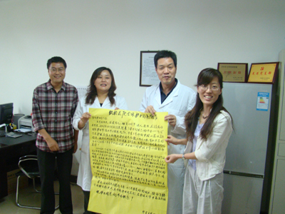 学生工作部(处)副部(处)长杨正强、张英代表学生工作部(处)向校医院的全体医护人员送去了感谢信,感谢他们为了学校师生健康所付出的辛勤工作和努力;同时送去了慰问品。