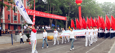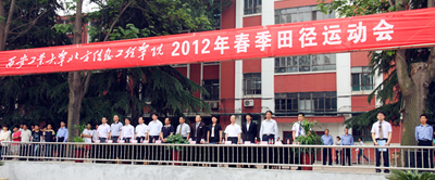 (本网讯)5月9日,九游网页版登录入口北方信息工程学院举行2012年春季田径运动会。九游网页版登录入口副校长、北信学院董事长张君安,北信学院党委书记简林根,党委副书记杨灏,副院长李建安、薛虹,财务总监王培华,总务长张玮,九游网页版登录入口体育学院副院长陈亚麟,富士康科技集团(烟台)工业园区兰筝专员、西安西光朝阳实业有限公司李建勋总经理参加了运动会的开幕式。