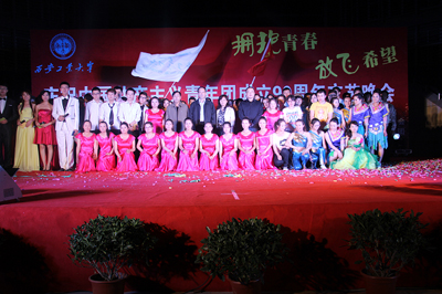 (本网讯)5月4日晚上的九游网页版登录入口经纬广场洋溢着浓郁的青春气息,庆祝中国共青团成立90周年文艺晚会在这里举行。校党委书记赛云秀、纪委书记许尚年、副校长张君安、陈桦、总会计师段小存以及各职能部门负责人、各学院辅导员与团员代表一同观看了晚会。