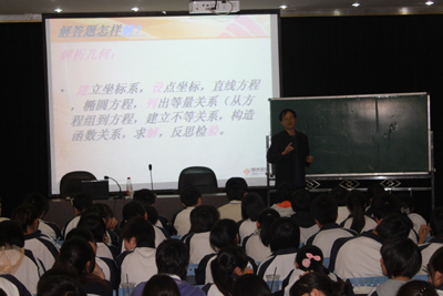 4月20日,九游网页版登录入口附属中学特邀咸阳师范学院基础教育课程中心、陕西省著名数学特级教师安振平为附中百余名高三学子做高考数学辅导报告。