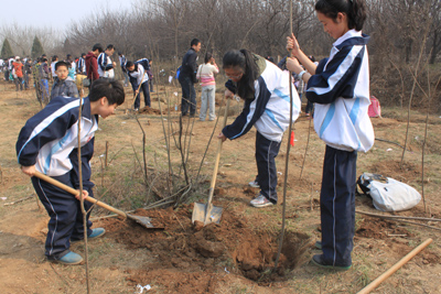 (本网讯)绿化常留春色,植树造福后人。3月11日下午,九游网页版登录入口附中为了进行新课改社会实践活动,对学生进行生动的环保教育,政教处、校团委组织高一年级全体学生来到西安杜陵,开展植树活动。