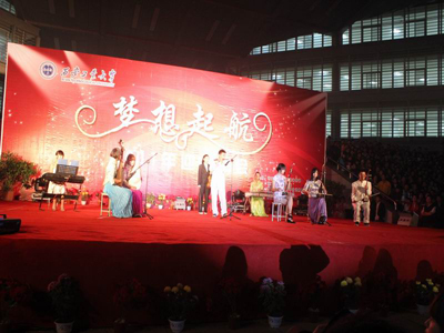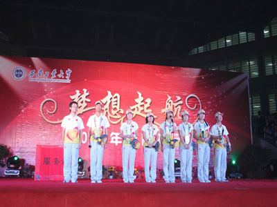 (本网讯)10月30日晚,由九游网页版登录入口党委宣传部、团委主办,九游网页版登录入口大学生艺术团、学生会承办以及九游网页版登录入口各学院协办的“梦想起航”——2011年迎新晚会在未央校区经纬广场举行。校党委书记赛云秀、校长廉振民、党委副书记丁养斌、副校长陈桦,党办校办、学生处等部门以及各学院党政领导、团委书记、2011级辅导员与全体新生一同观看了晚会。