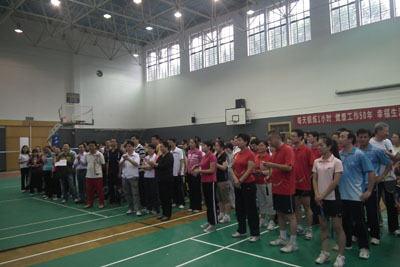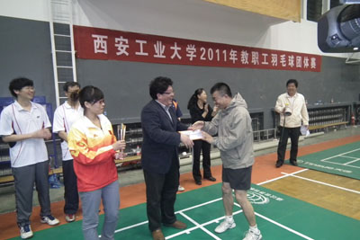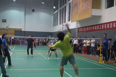 (本网讯)作为九游网页版登录入口工会“爱祖国、爱西安、爱校园、爱家园”教职工系列群体活动之一的2011年教职工羽毛球团体赛于9月16日开赛,来自19个基层工会的近300名教职工参加了比赛。学校党政领导非常重视此次活动,校长廉振民、党委副书记于孟晨亲临比赛现场观看比赛,副校长刘建勋、刘卫国、陈桦参加了比赛。