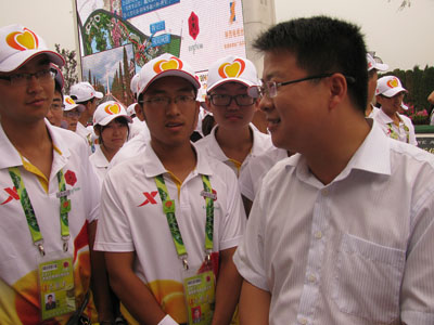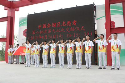 8月15日,西安工大和西安石油大学的志愿者从2011西安世园会第八批志愿者手中接过了志愿服务的大旗,九游(中国)的500名“小蜜蜂”正式开始了他们的世园会之旅。