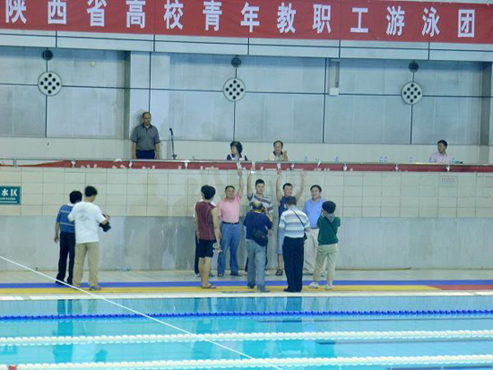 (本网讯)省教育工会青年教职工工作委员会于6月19日在陕西省游泳中心举办了陕西省高校青年教职工游泳团体接力比赛。陕西23所高校的23支教职工代表队参加了比赛,九游网页版登录入口代表队荣获优秀组织奖。省教育工会常务副主席张敏、副主席马笑安观看了游泳比赛并为获奖队颁奖。