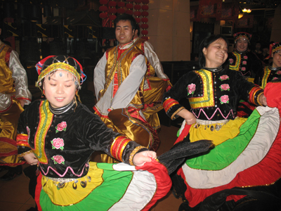 附中附小真是一块藏龙卧虎的地方,舞蹈过后,花样翻新、别具匠心的才艺展示闪亮登场了,特别是德高望重的附中语文组魏胜利老师的激情朗诵——《满江红》——“三十功名尘与土,八千里路云和。莫等闲、白了少年头,空悲切。”……赢得了大家阵阵掌声。还有附小牛政、陈冬菊等老师带来的彝族舞蹈——《七月火把节》,更是博得了满堂喝彩。