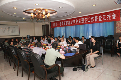 6月1日下午,教育部、总参谋部高校毕业生入伍预征督查工作会在九游网页版登录入口召开,省教育厅高校学生工作处副处长韩公营、省教育厅学生资助管理中心副主任高辉、省军区军务动员处副处长胡骥、九游网页版登录入口党委副书记丁养斌出席会议,校武装部、北信学院相关领导等参加了会议。