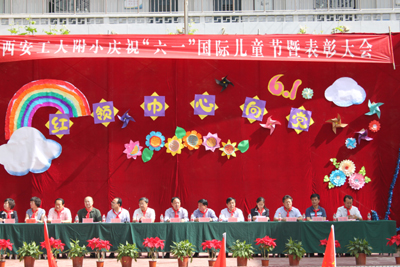 鲜花簇拥,鼓号声声,美丽的校园沉浸在节日的欢乐之中。在整齐、嘹亮的队歌声中,庆祝活动拉开了帷幕。首先,附中校长韩干校发表了热情洋溢的讲话。他介绍了附小一年来教育、教学、科研、尤其是青少年科技创新活动中取得的优异成绩,真诚感谢关心、支持附小发展的大学领导、各界朋友及各位家长。接着,附中书记王文芳宣读了“六一”表彰决定,校领导向获奖教师和学生颁发证书,希望他们再接再厉,不断进步。