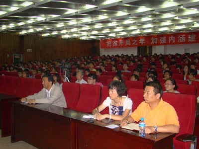 (本网讯)5月26日下午,图书馆报告厅座无虚席。400多名辅导员和学生代表济济一堂,共同聆听了著名文化学者商子雍主讲的《对中国社会发展前景的文化解读》的精彩讲座。校党委副书记丁养斌出席讲座。