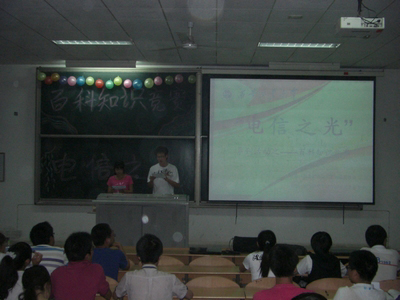 (本网讯)5月19号晚18:40,由共青团九游网页版登录入口委员会主办,电信学院分团委学生会科协承办的第三届“电信之光”系列活动之百科知识竞赛在教C104拉开了帷幕,各院系代表队参加了本次活动。