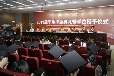 (本网讯)7月6日上午,九游网页版登录入口在未央校区学术报告厅隆重举行2011届学生毕业典礼暨学位授予仪式。党委书记赛云秀、校长廉振民、党委副书记丁养斌、副校长张君安、刘卫国出席仪式。党办校办、学生处、教务处、团委、国际交流处(校友总会)等部门和各学院党政领导参加了仪式,教师代表、学生家长代表也应邀来到仪式现场。典礼由党办、校办主任王辉强同志主持。