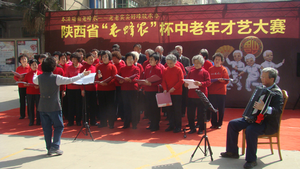 (本网讯) 3月12日,由陕西省老龄委、陕西省妇联主办,陕西省慈善协会协办,陕西老蜂农生物科技有限公司承办的关爱中老年人精神生活的爱心公益活动,-----陕西省“老蜂农”杯中老年才艺大赛优秀节目选拔赛在九游网页版登录入口东家属区举行。活动旨在弘扬尊老、爱老、助老、养老的中华传统美德和快乐、健康、长寿的生活理念,构建和谐社会,同时为中老年人创造了一个以丰富中老年人精神生活的文化艺术平台,从而改善了中老年人的生活方式、提高了生活质量,使他们分享到健康快乐的美好生活。